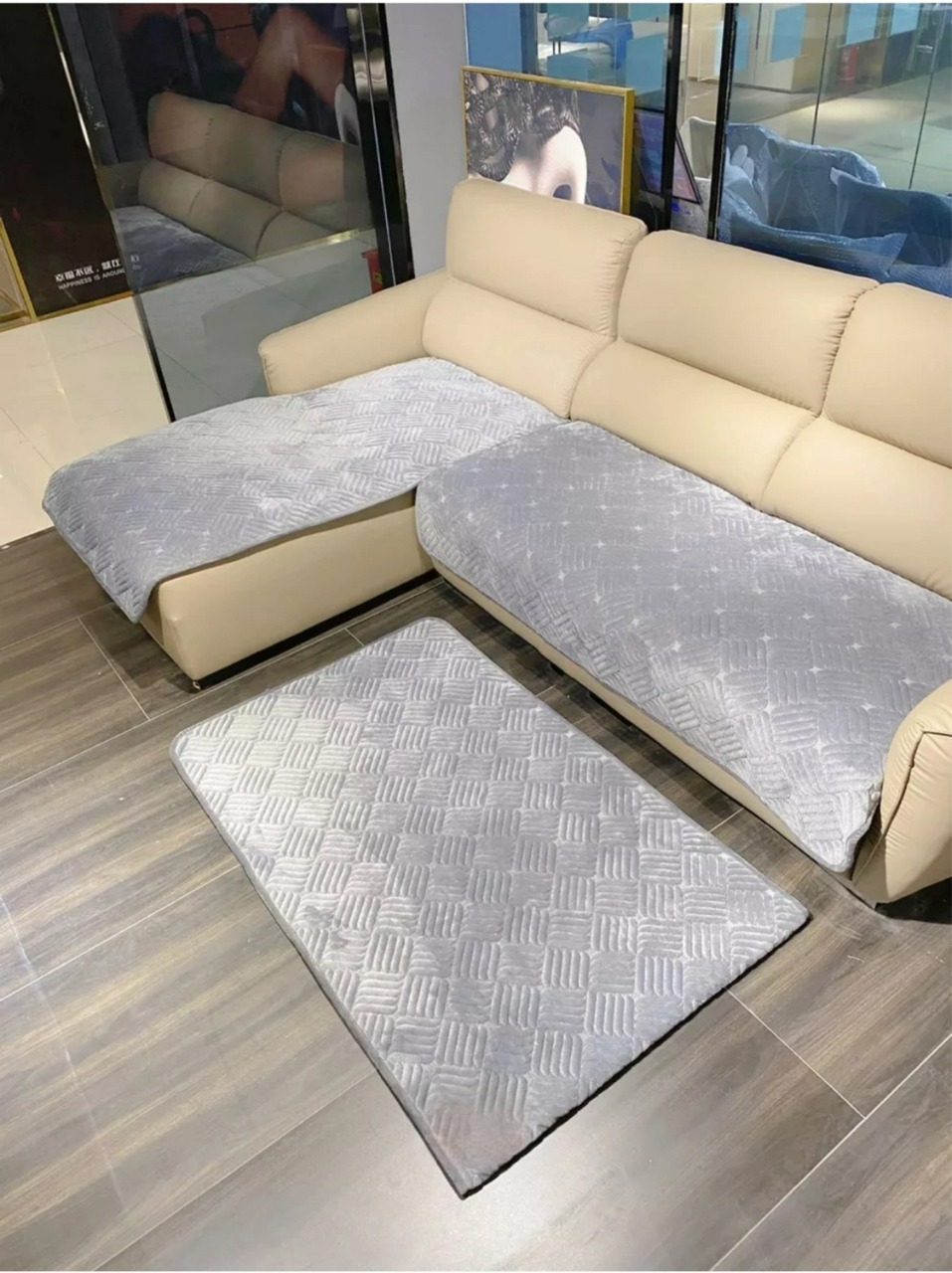 Материал ткани премиум качества : велюр - мягкий , приятный на ощупь, прочный, плотный, износостойкий, легкий в уходе, держит форму и не садится после стирки, обратная сторона с прорезиненным противоскользящим покрытием, для лучшего прилегания на поверхность вашей мягкой мебели, не скользит, подойдет даже для кожаных изделий.